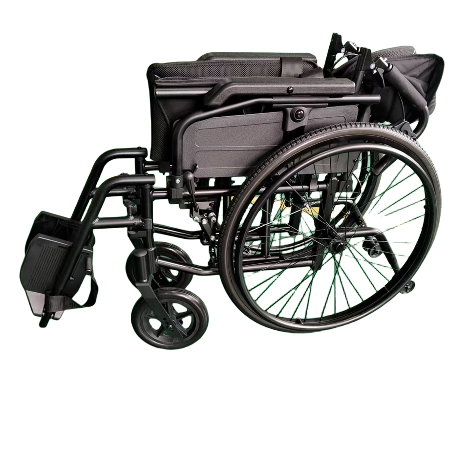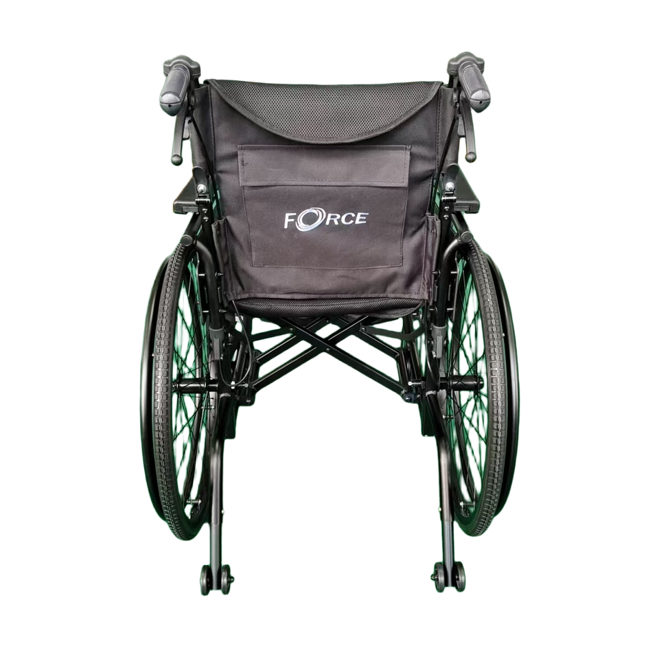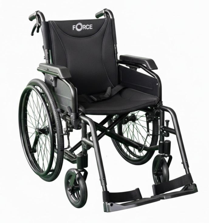 - Lightweight Aluminium (15.5kg when fully assembled with both wheels and legrests on)
