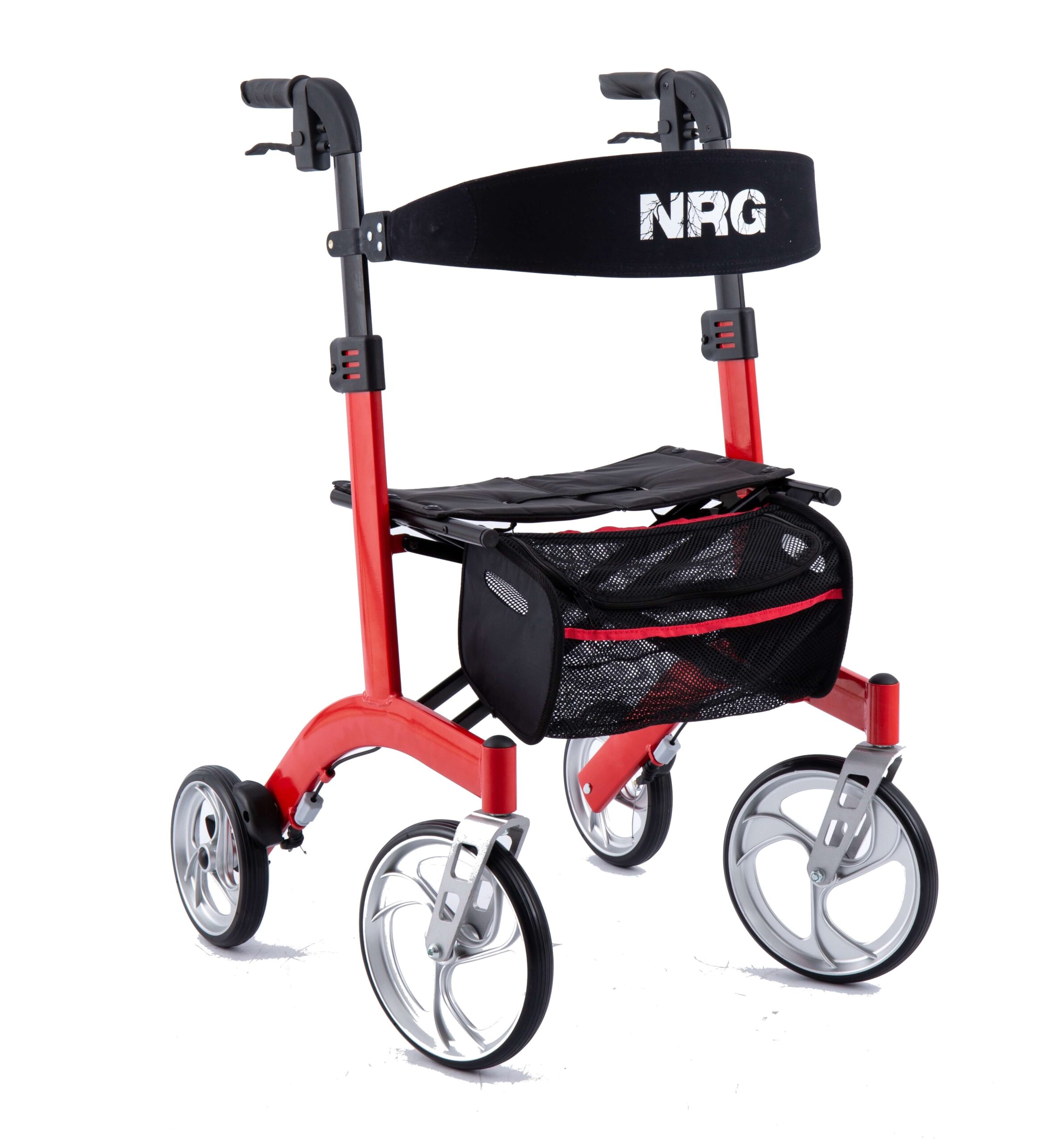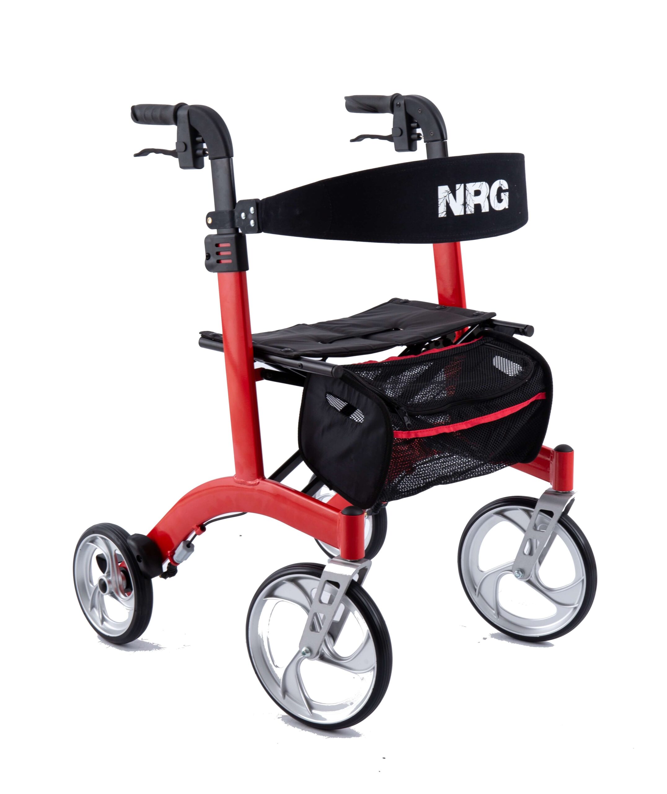 The NRG Original Rollator by Force Healthcare is a foldable and lightweight aluminium rollator with backrest and bag included as standard.